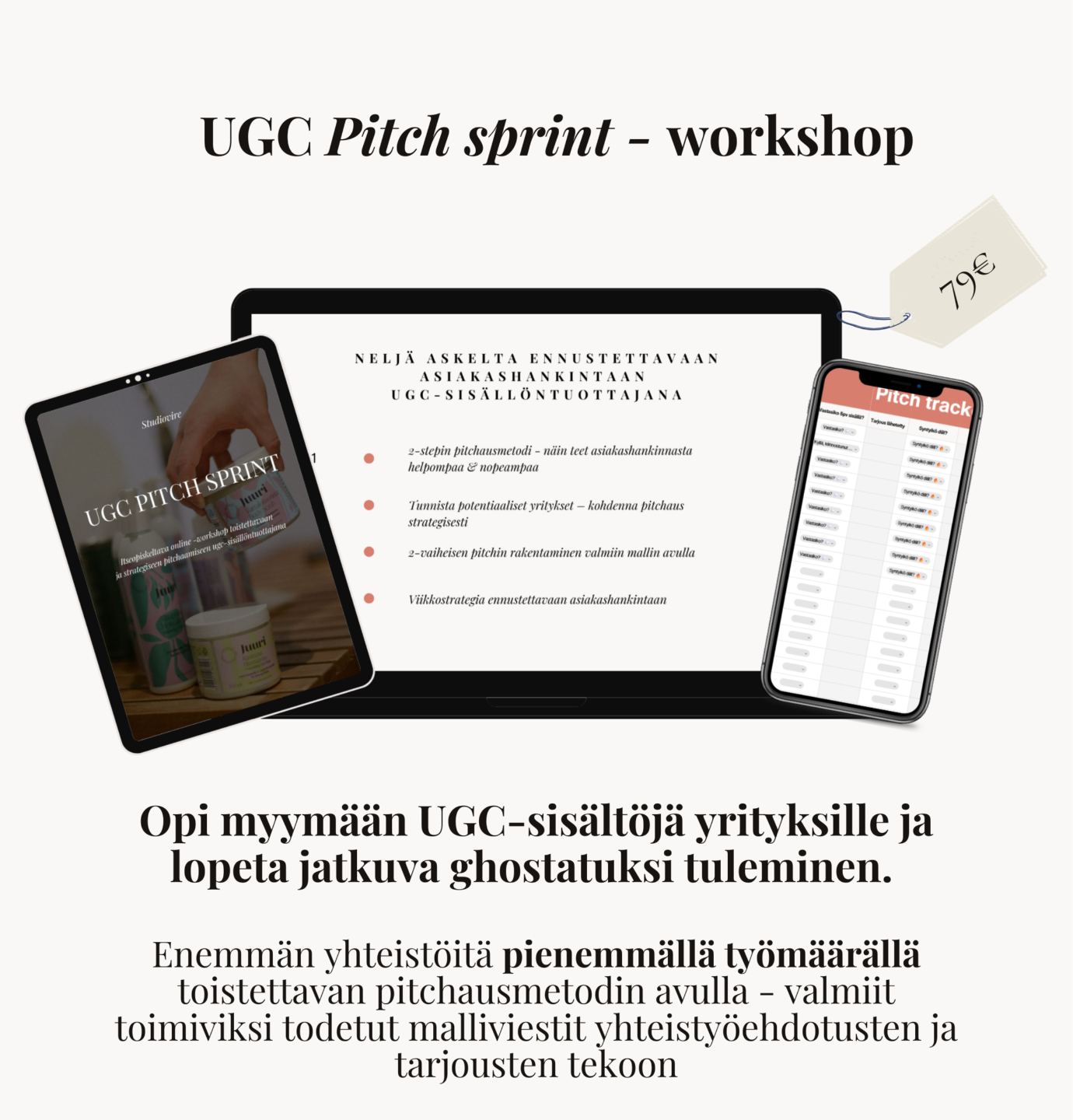 Rakenna tämän itseopiskeltavan workshopin avulla itsellesi toimiva & toistettava pitchausmetodi, jonka avulla teet UGC-yhteistöiden hankkimisesta ennustettavaa ja helpompaa