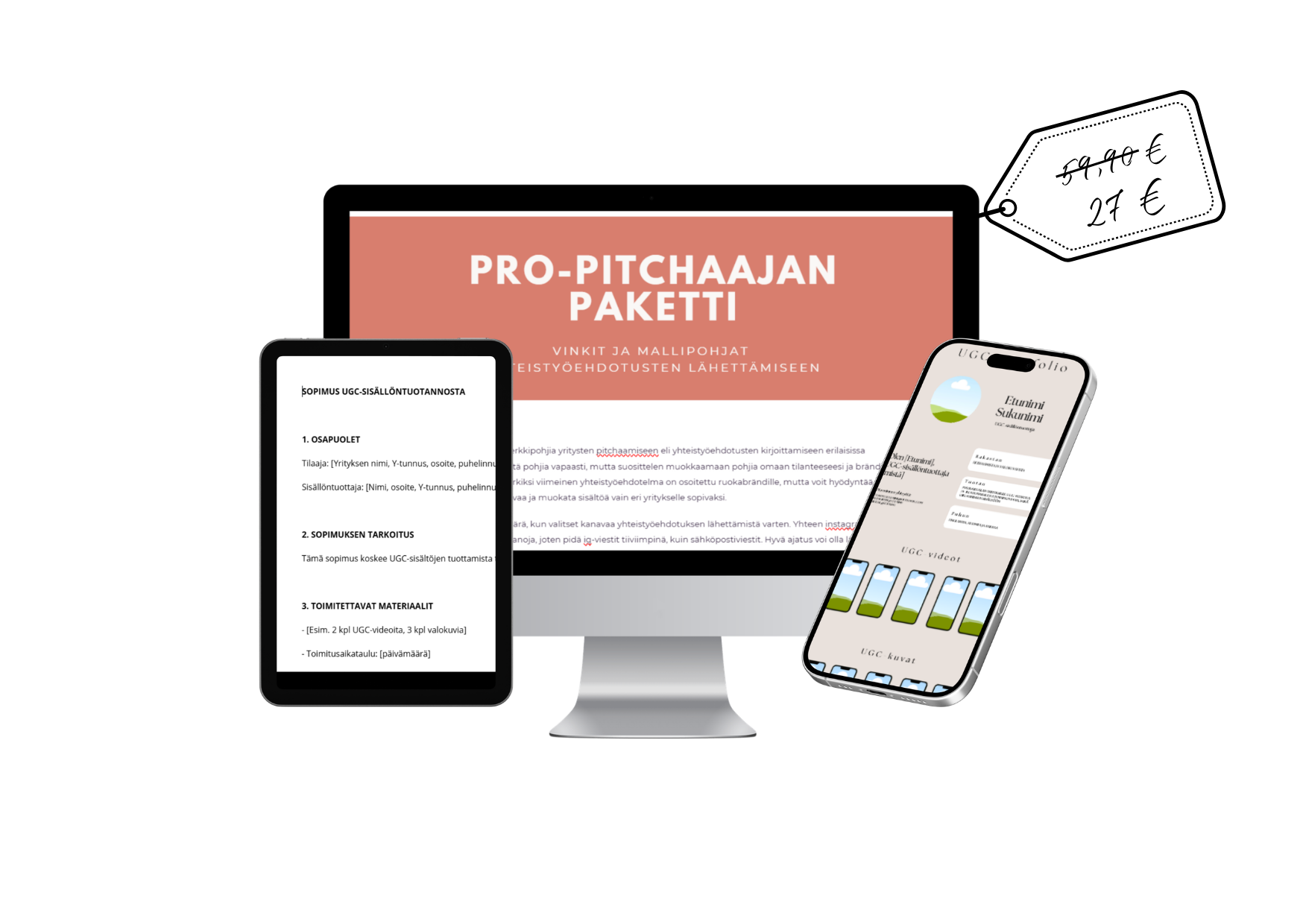 Starter packista löytyvät mallipohjat on rakennettu säästämään aikaasi, selkeyttämään tekemistäsi ja tukemaan etenemistäsi konkreettisesti heti alusta asti. Kaikki UGC-urasi elintärkeimmät työkalut (ja toimiviksi todetut sellaiset) yhdessä paketissa ja heti valmiina käyttöön - erittäin edulliseen hintaan, jota ei ole tarjolla missään muualla. Tämän sivun jälkeen et enää pääse käsiksi tähän tarjoukseen.