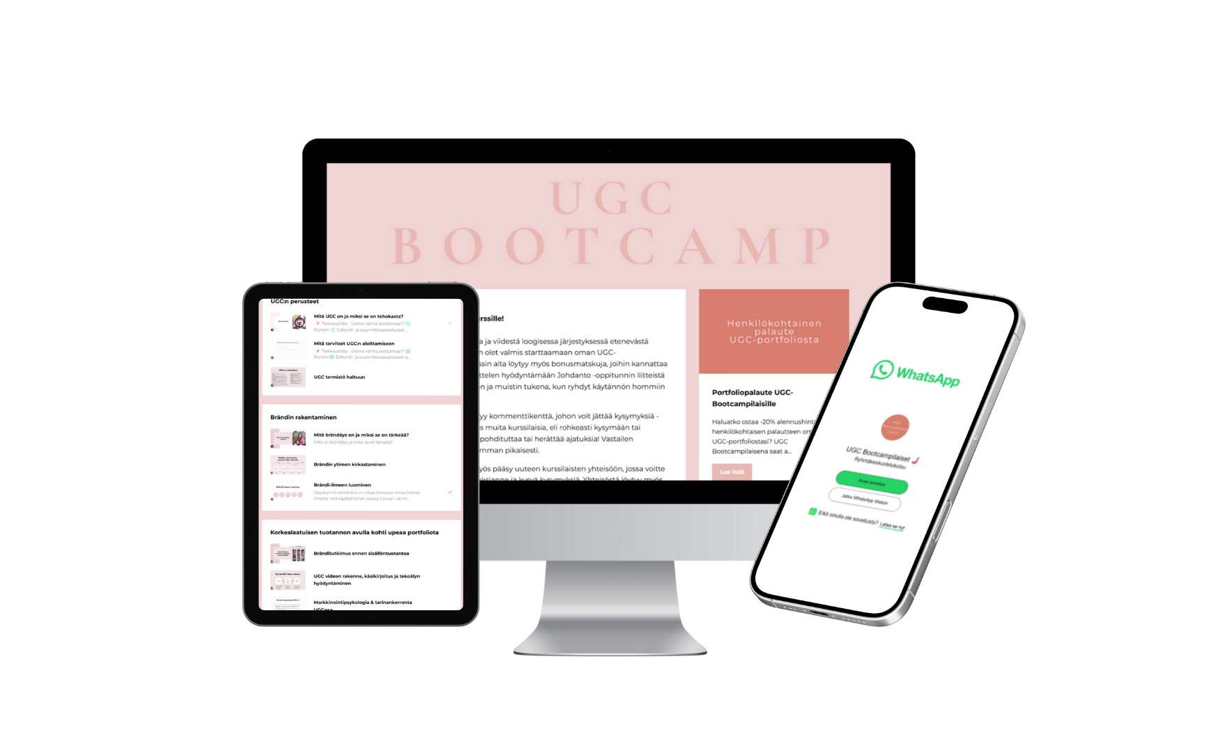 Kurssin jokaiselta oppitunnilta löytyy myös kommenttikenttä, jossa pääsee kysymään apuja ja vinkkejä kurssin käymiseen, UGC-sisällöntuotantoon tai tehtävien tekemiseen liittyen. Tämän lisäksi saat pääsyn kurssilaisten omaan WhatsApp-yhteisöön, jossa pääsette verkostoitumaan & jakamaan kokemuksia muiden kurssilaisten kesken. Myös minä olen ryhmässä vastailemassa kysymyksiinne, ja jakamassa satunnaisesti vinkkejä erilaisista yhteistyömahdollisuuksista - eli yksin ei tarvitse jäädä epäröimään.